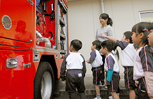 災害に備え、クラスごとや園全体で、毎月1回、年間12回以上、火災・地震・津波・不審者侵入・消火訓練・通報訓練・ 171訓練・引き渡し訓練・防災訓練等を実施しています。